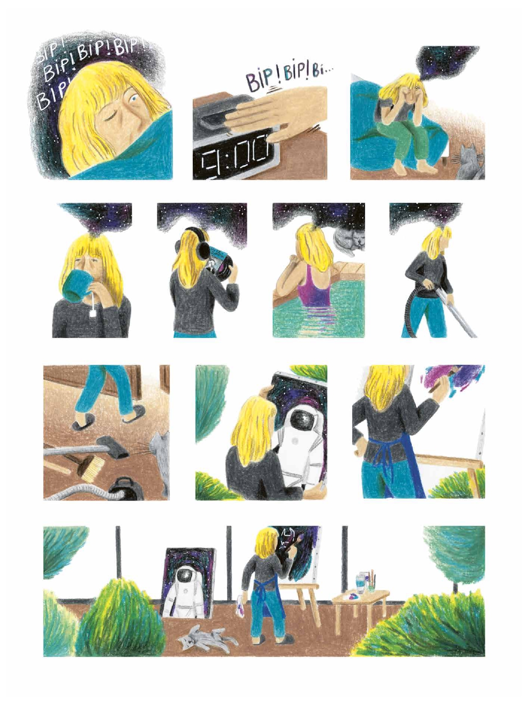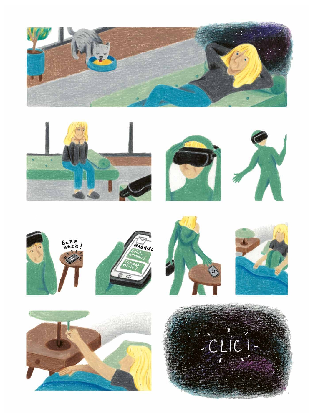 Dans son périple connecté, elle s’aventurera aux confins de l’Univers, déroulant peu à peu le fil de ses désirs enfouis et rompant les amarres avec un monde qui lui est étranger…